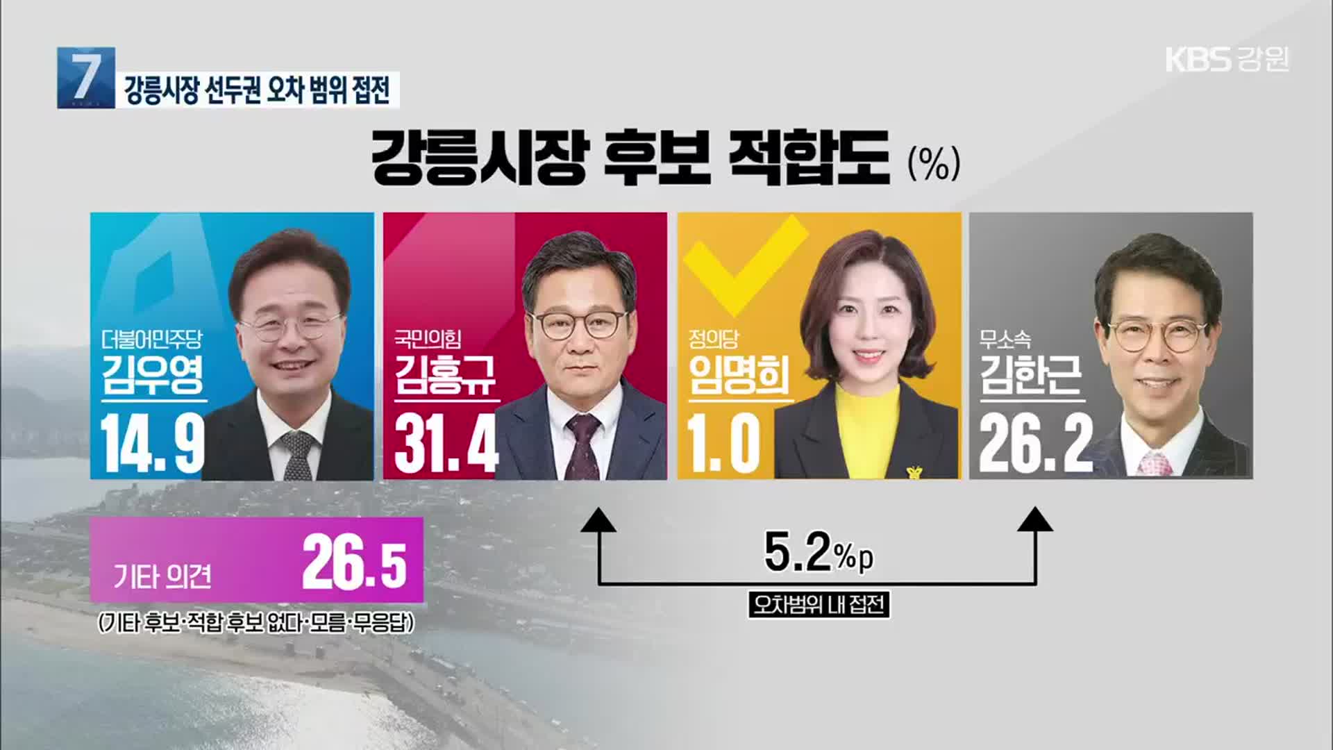 강릉시장 후보 김우영 김홍규 김한근 여론조사 결과 정리