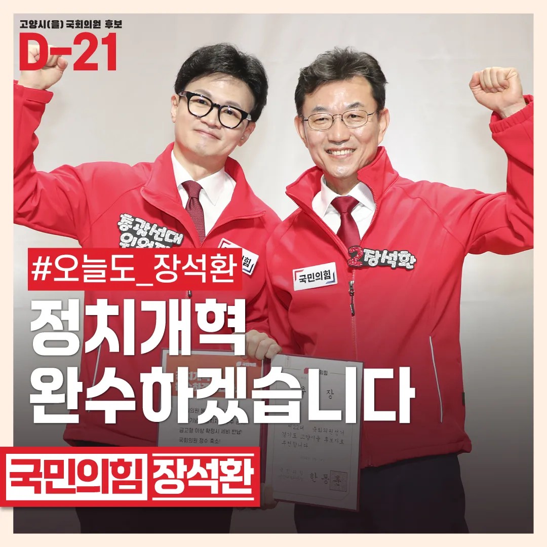 장석환 후보는 '덕양, 새로 태어나다! (장석환이 설계하는 실크로드 덕양 프로젝트)'라는 발전 로드맵을 발표하며 제22대 국회의원선거 고양 을 출마를 선언했습니다. 그는 이 로드맵을 통해 북한산에서 한강까지 비단같이 연결된 새로운 물의 도시, 강변도로 대심도 다목적 터널, 고양은평선의 경의중앙선 연결, 서울특별시 덕양구, 기득권 포기 등의 프로젝트를 제안하였습니다.