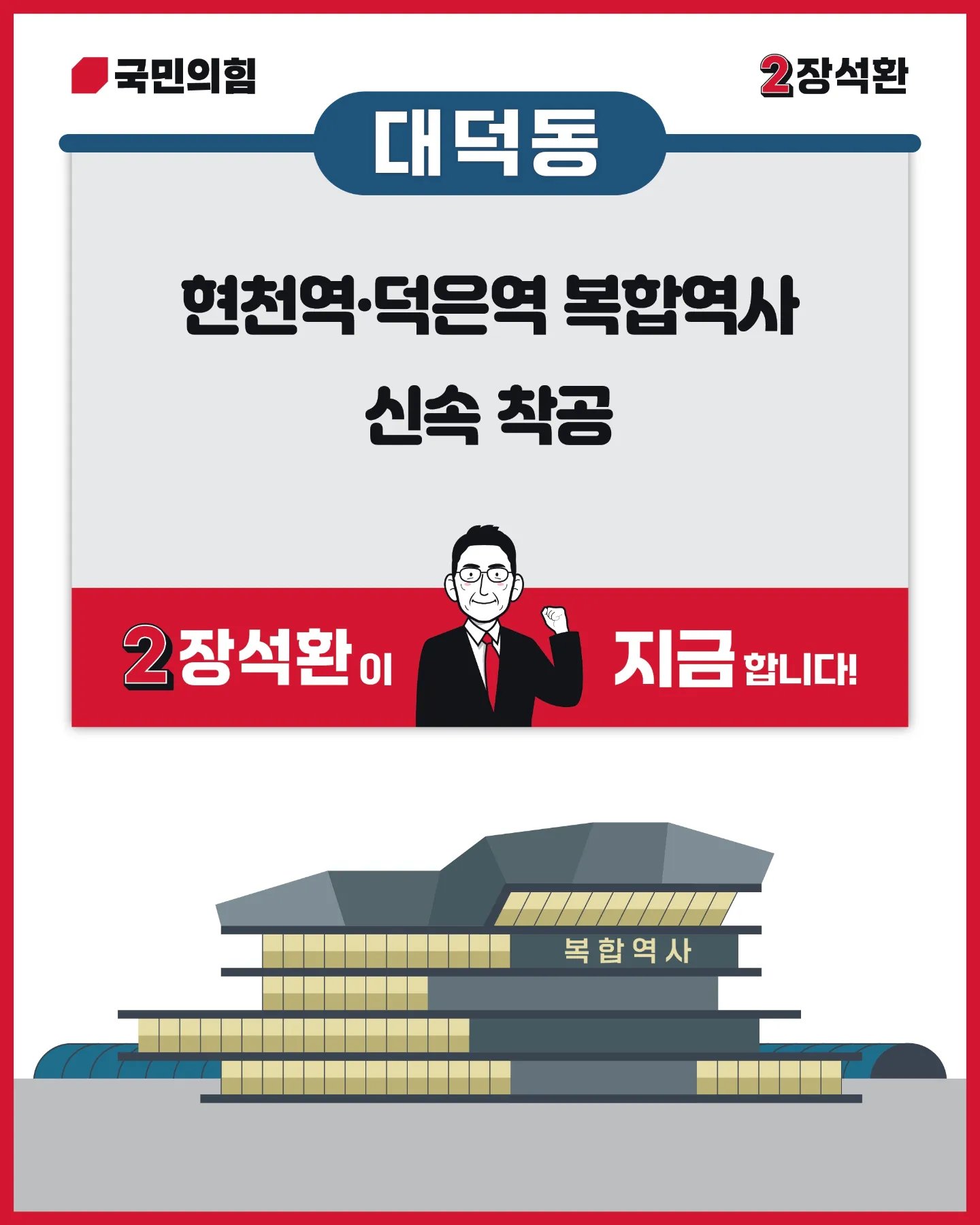 장석환 후보는 거대 야당에 대해 "소득주도성장 추진으로 자영업자를 힘들게 하고, 대북 저자세 외교로 국가안보를 불안하게 하며, 무리한 부동산 3법으로 미래세대의 앞길을 막은 민생경제 파탄의 주역"이라며, "386 운동권 세력은 486, 586, 686이 되도록 기득권을 놓지 않고 부패한 카르텔이 되어 대한민국을 퇴행시키고 있다"라고 야당에 대해 강하게 비판했습니다.
