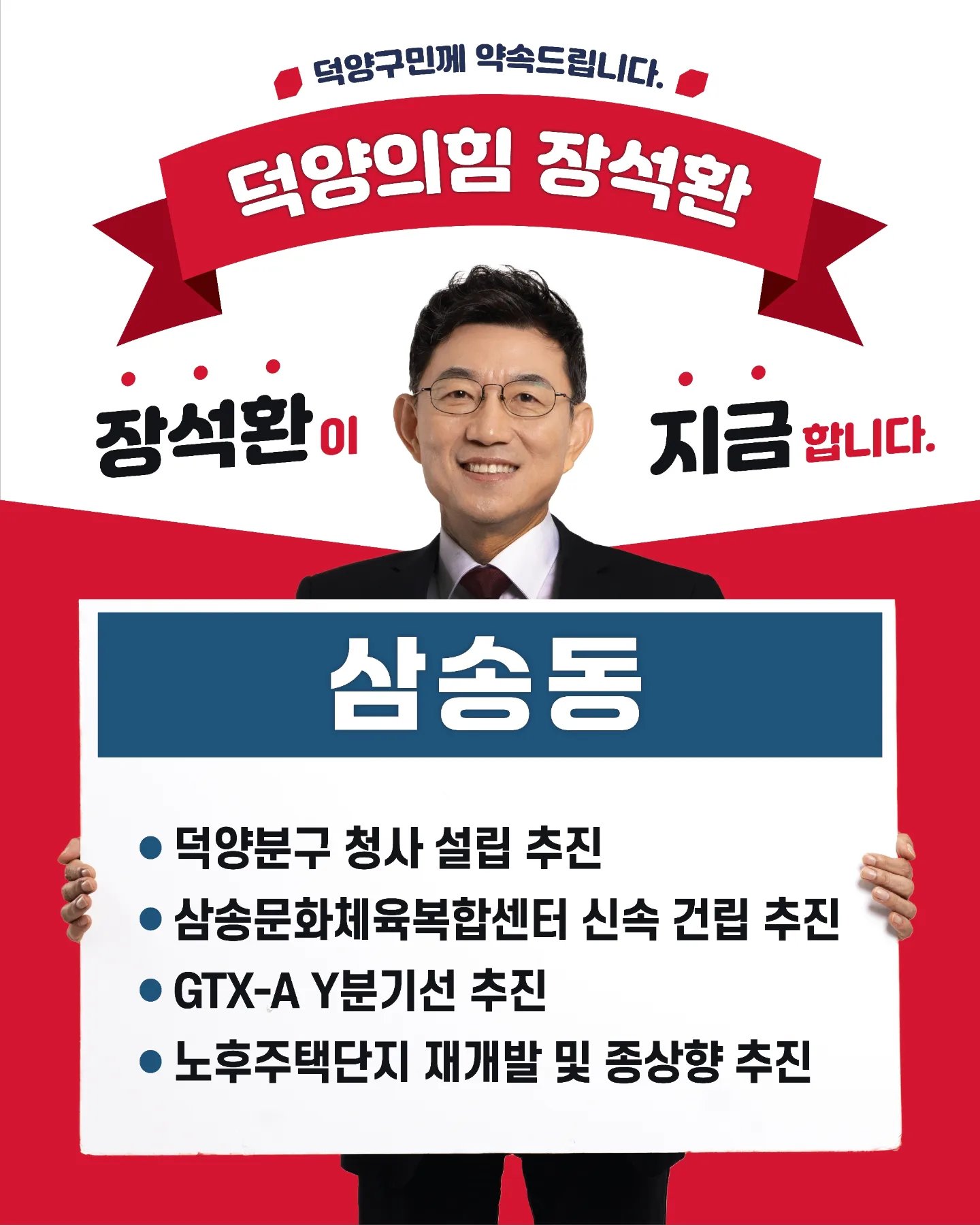 장석환 후보는 '덕양, 새로 태어나다! (장석환이 설계하는 실크로드 덕양 프로젝트)'라는 발전 로드맵을 발표하며 제22대 국회의원선거 고양 을 출마를 선언했습니다. 그는 이 로드맵을 통해 북한산에서 한강까지 비단같이 연결된 새로운 물의 도시, 강변도로 대심도 다목적 터널, 고양은평선의 경의중앙선 연결, 서울특별시 덕양구, 기득권 포기 등의 프로젝트를 제안하였습니다.
