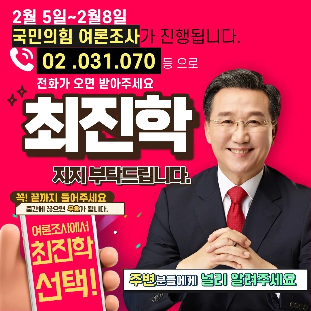 국민의힘 군포시 후보 최진학은 지난 십여 년간 군포의 선거는 민주당의 독주가 계속됐다며 민주당이 우리 국민의힘에 대해 기득권이라고 주장하지만 군포에서는 민주당이 의심의 여지 없는 기득권이라고 말했습니다. 그는 이제는 노후 도시가 되어버린 군포의 잃어버린 시간을 극복하기 위한 다른 선택이 필요한 시간이라며 철 지난 운동권 투사나 낙하산 정치인들에게 우리 군포를 우리 대한민국의 미래를 맡길 수 없다고 출마의지를 피력했습니다.