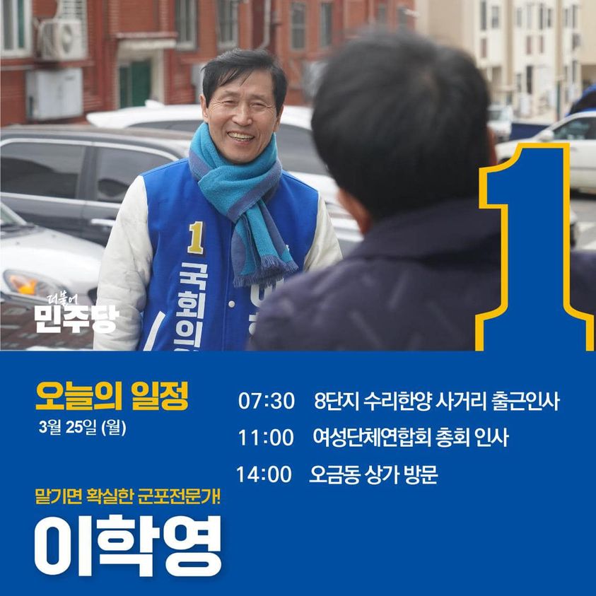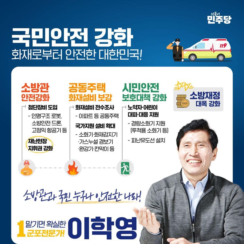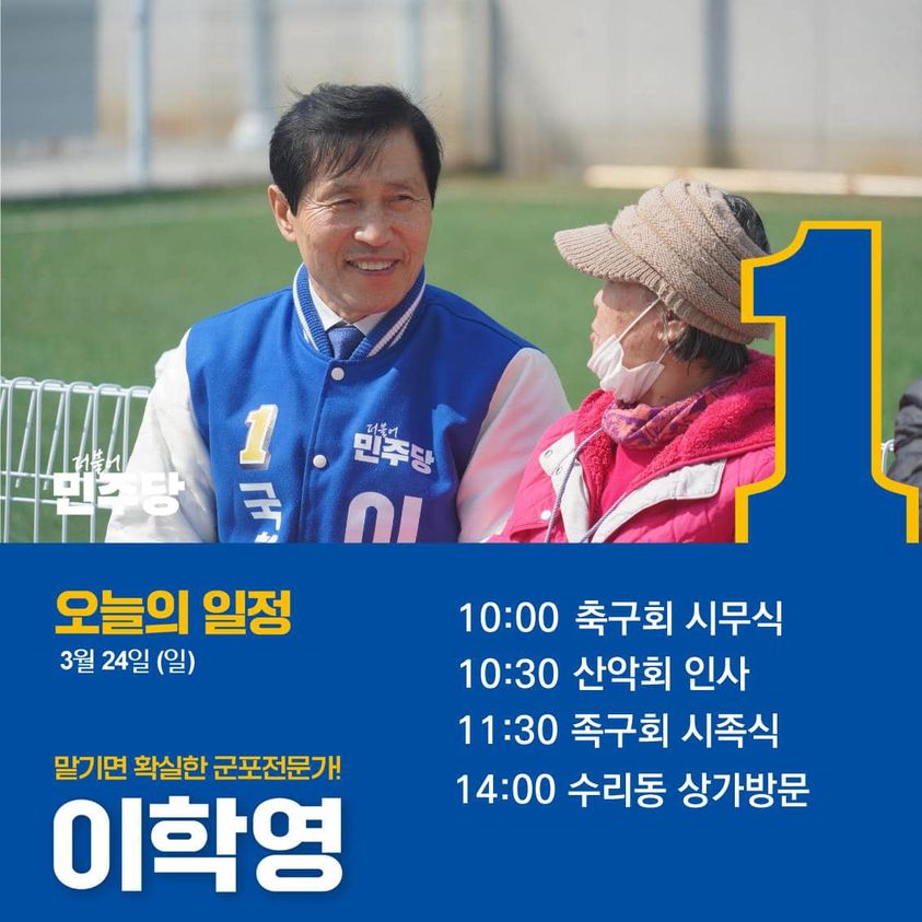 더불어민주당 국회의원 후보 이학영은 경기 군포 지역구에서 출마하였습니다1. 그는 "시민과 함께 윤석열 검찰독재 정권의 폭정을 막고, 군포의 더 큰 발전을 만들겠다"고 밝혔습니다. 특히 이 의원은 86일간 이어진 김건희 특검 촉구농성, 후쿠시마 오염수 방류 저지 범국민 운동, 이태원 참사 특위 활동 등을 공개하며 야당 국회 의원의 선명성을 드러냈습니다.