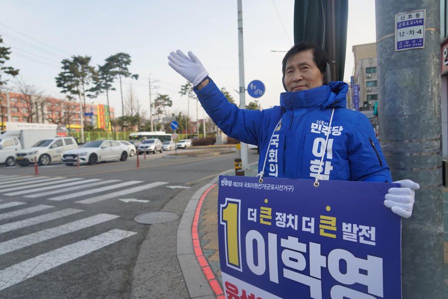 더불어민주당 국회의원 후보 이학영은 경기 군포 지역구에서 출마하였습니다1. 그는 "윤석열 정부의 폭주 속에 법치와 공정, 상식이 무너지고 있다""이번 총선은 정의를 바로 세우고 윤석열 정부가 내던져 버린 민생을 회복시켜, 정권심판과 정권교체의 발판을 마련하는 선거가 될 것"이라고 강조하였습니다.