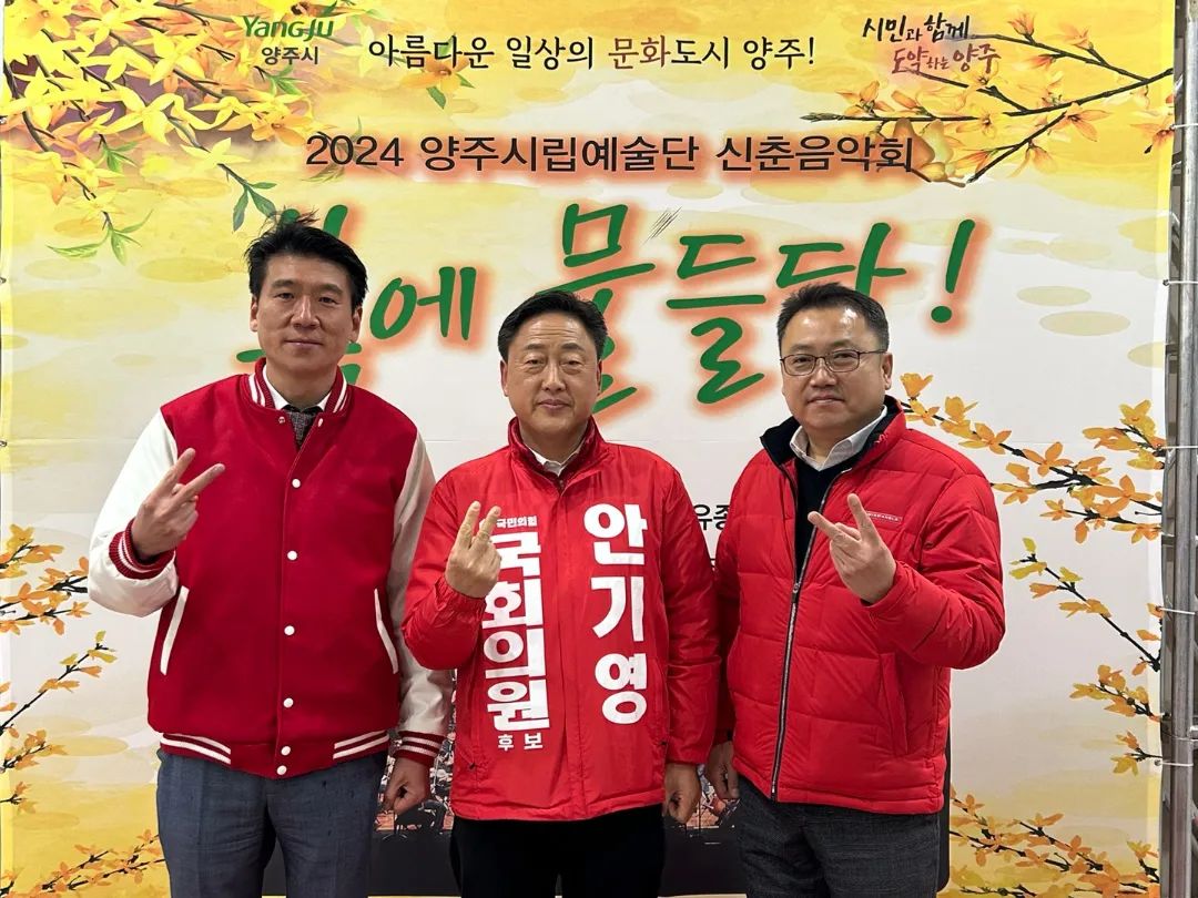 안기영 후보는 "이번 총선에서 정성호 의원을 반드시 꺾어 양주의 새로운 발전을 만들겠다"고 결의를 다졌습니다. 그는 또한 "모두가 안주할 때 ‘필사즉생’의 각오로 양주의 새 길을 열어가고 있다. 아무것도 변한 것이 없는 게 양주의 현실"이라며 "신양주 테크노밸리의 ICT클러스터 조성을 대선 공약에 반영시키고 7호선 연장 도봉산~옥정선 조기 개통과 옥정~포천선 조기 착공을 위해 전력을 다하고 있다"고 밝혔습니다