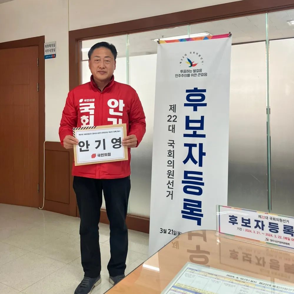 안기영 후보는 국민의힘 동두천양주연천갑 후보로, 2024년 제22대 국회의원 선거에 출마하였습니다. 그는 과거 3년 동안 경기 양주시·동두천시 국회의원 김성수의 보좌관으로 일했으며, 이후 경기도의원을 두 차례 지냈습니다4. 또한 한국환경공단 상임이사 등을 역임하였습니다. 2020년 제21대 국회의원 선거에서는 미래통합당 후보로 경기도 양주시 선거구에 출마하였으나, 더불어민주당 정성호 후보에게 밀려 낙선하였습니다3. 이후 국민의힘 양주시당협위원장을 역임하며 지역 활동을 이어왔습니다4. 현재는 정성호 의원과 재대결을 펼치고 있습니다.