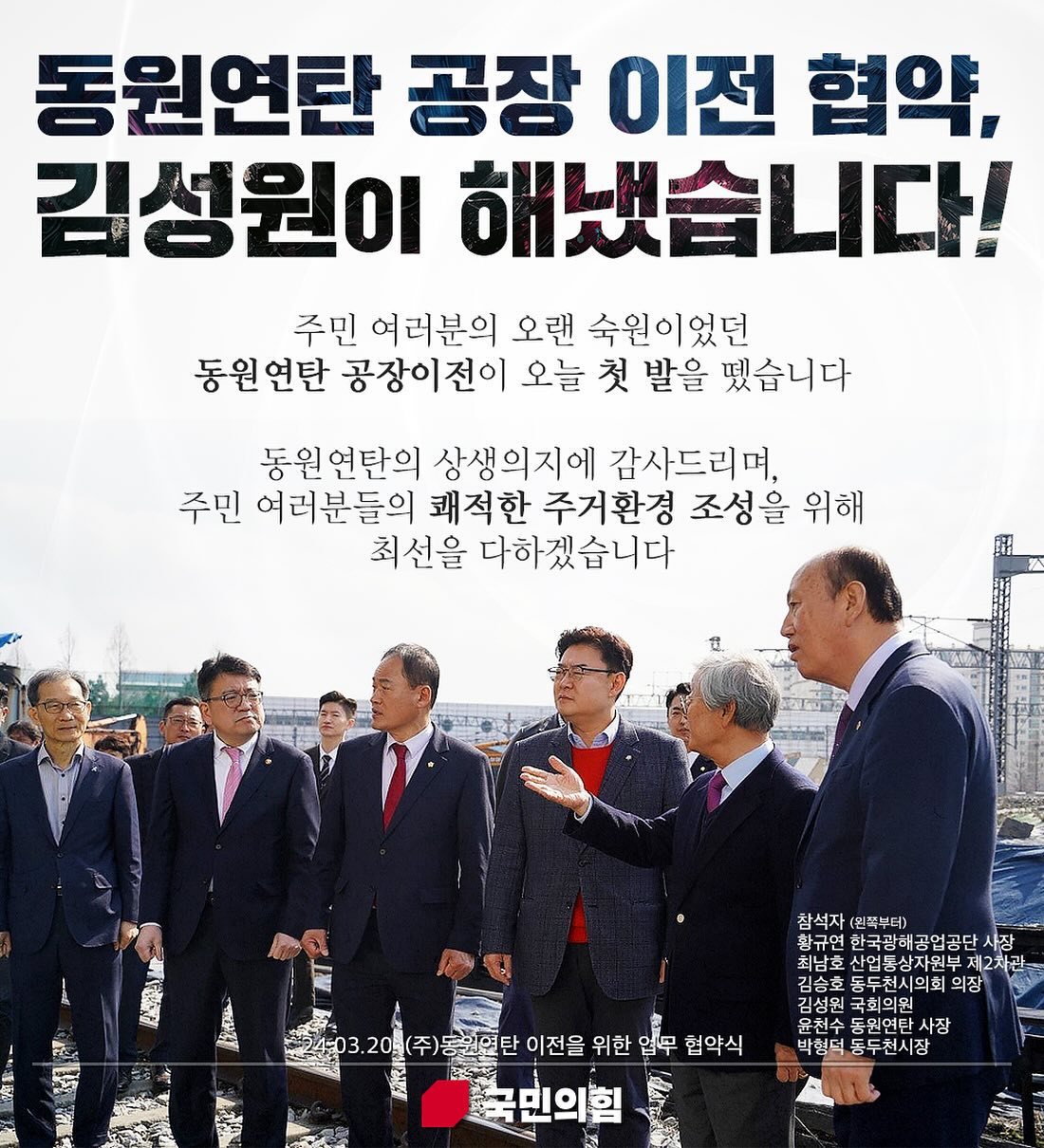 국민의힘 국회의원 후보 김성원은 경기 동두천양주연천 지역구에서 활발한 정치 활동을 펼치고 있습니다. 그는 22대 총선 예비후보로 등록하였으며, "시행착오 없이 당선 첫날부터 유능하게 일할 수 있는 국회의원이 동두천·연천에 필요하다"고 강조하였습니다. 그는 지역 숙원사업을 속전속결로 마무리 짓겠다는 포부를 밝혔습니다. 김성원 후보는 동두천·연천의 굵직한 현안들을 해결해 왔다는 평을 받고 있습니다.