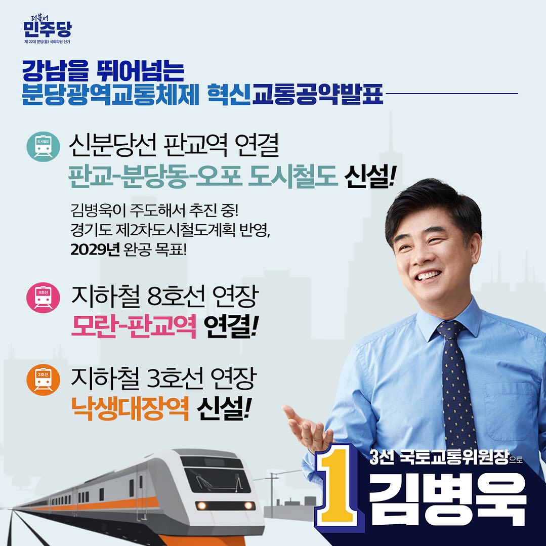 또한, 김병욱 후보는 분당 오리역을 중심으로 SRT 정차역을 만들기 위해 노력 중이라고 밝혔습니다. 분당구을 지역의 정치적 상황은 매우 경쟁적입니다. 김병욱 후보는 지난 20대 총선에 이어 21대에서도 국회 입성에 성공하였습니다. 그는 10년 만의 분당을 지역 재선의원이자 민주당 최초 분당을에서 재선에 성공하였습니다. 특히 분당을 선거는 손에 땀을 쥐는 접전이었으며, 김병욱 후보는 막판 대역전극을 이뤄냈습니다
