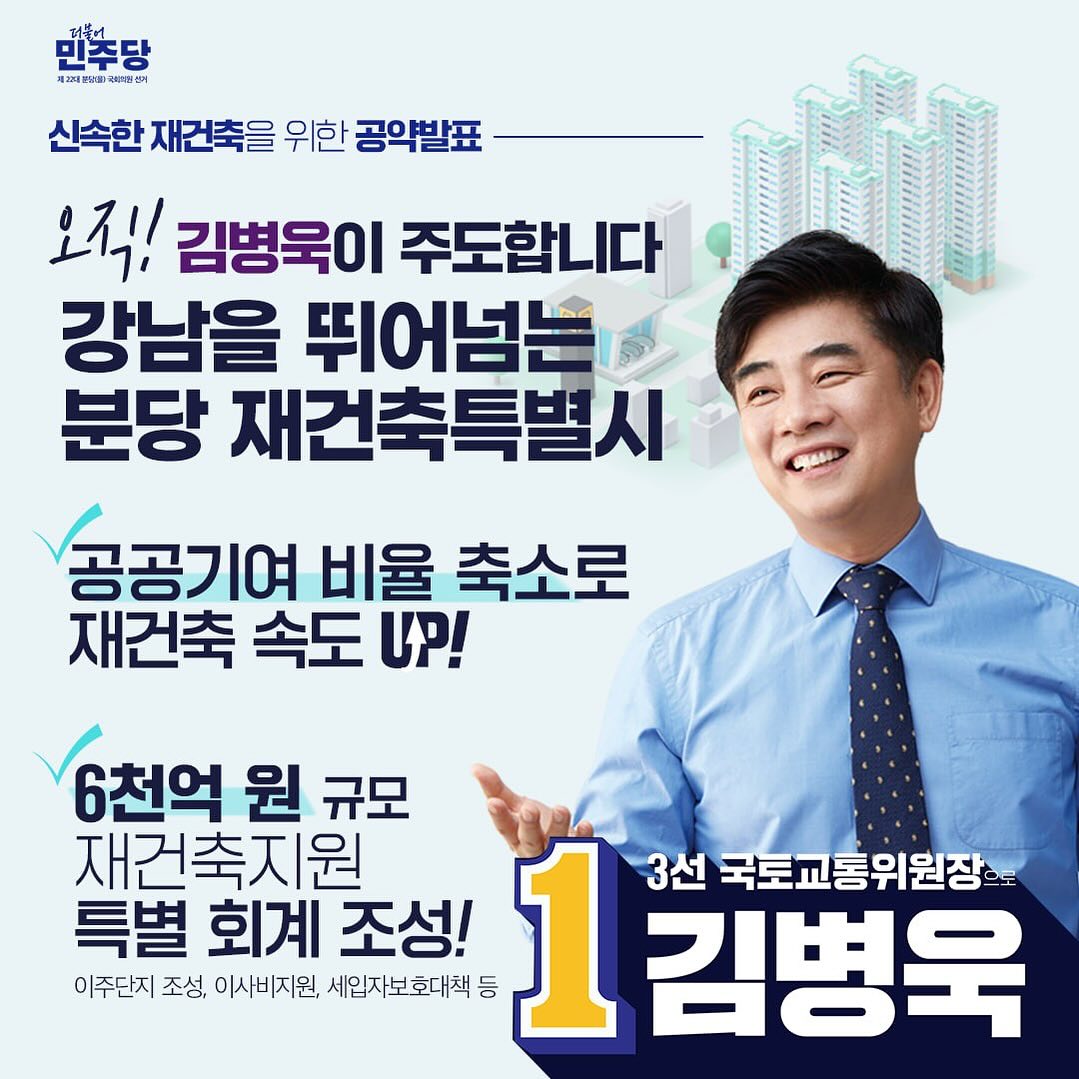진정한 대의민주주의에서는 이러한 양보와 타협이 필수적인 요소라고 생각하며, 이를 통해 사회적 비용을 줄이고 더 나은 민생으로 이어질 수 있다고 믿습니다. 그는 신도시 재건축 특별법이 통과된 후, 이번에 3선이 되면 국회 국토교통위원장을 해서 법이 현장에 잘 안착할 수 있도록 추후 법과 시행령을 잘 만들어 보겠다고 밝혔습니다. 이는 그의 정치적 입장을 잘 보여주는 예시로, 국민의 삶을 개선하기 위한 구체적인 정책을 제시하고 이를 실현하기 위해 노력하는 모습을 보여줍니다