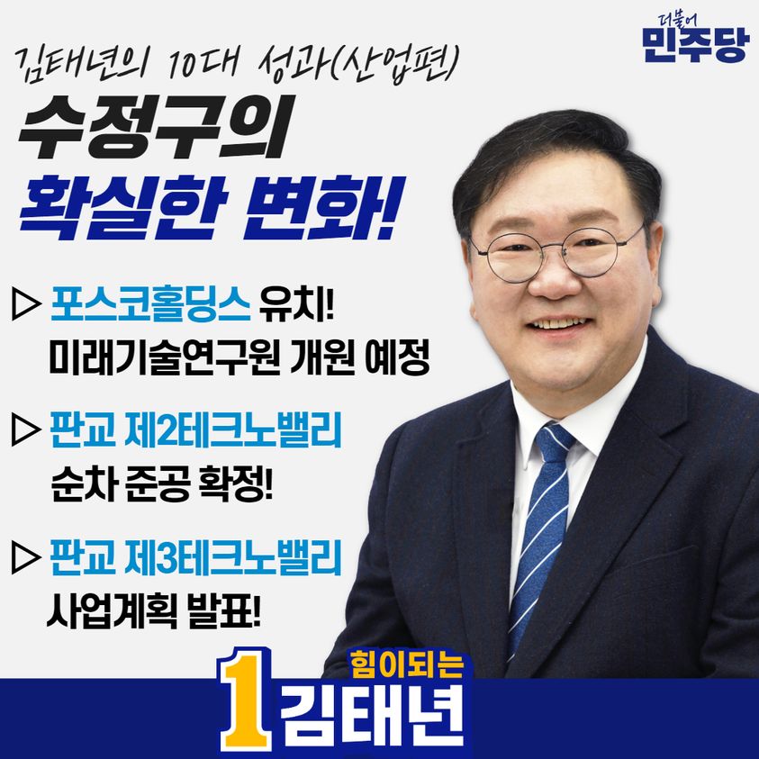 김태년 후보는 이번 선거에서 당선되면 민주당의 중진의원으로서 국회부의장 혹은 국회의장도 바라볼 수 있다는 관측이 나오고 있습니다. 그러나 그가 5선 고지를 밟기 위해서는 여당 국민의힘 후보로 공천을 받은 장영하 변호사와 맞대결을 넘어야 합니다. 김태년 후보의 주요 활동으로는 ‘첨단자족도시 수정구의 확장’, ‘세계적인 한국형 실리콘밸리로의 도약’, ‘교육 격차 없는 교육혁신도시의 완성’, ‘중단없는 순환형 공공재개발의 실현’ 등을 공약으로 내세웠습니다. 그는 이번 선거를 '무능한 윤석열 정권을 심판하는 선거’로 규정하고, 문재인 정부의 첫 번째 정책위의장이 되어 국정운영의 큰 그림을 그린 경험과 한국판 뉴딜이라는 국가발전전략을 설계한 경험, 민주당 원내대표로서 다수 국회를 하나로 이끈 경험으로 대한민국을 바로 세우겠다고 5선 도전 의지를 밝혔습니다.