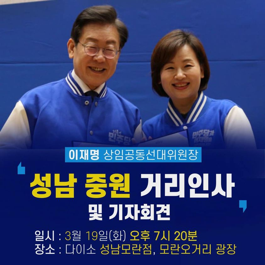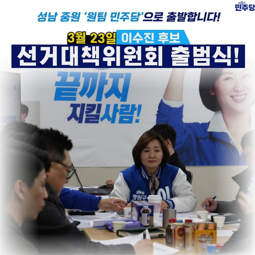 그녀는 성남중원 출마 배경에 대해 "중원 출마 결단은 당과 중원구 여러분의 뜻이 함께 모인 결과"라며, 후보 개인만의 판단이 아님을 시사하였습니다. 이수진 후보는 "중원에 온 뒤 1주일 만에 이수진 후보 지지도 1등이라는 여론조사 결과가 이를 잘 보여 준다"며 설명하였습니다. 이수진 후보는 성남중원 발전과 지역현안 해법을 위한 5대 정책공약도 함께 발표하였습니다. 그녀는 성남중원 지역의 정치적 상황에 대해 "민주당에게 성남중원은 새로운 나라를 향한 희망이다. 결코 중원을 다시 국민의 힘에게 내어줄 수 없다"라고 강조하였습니다.