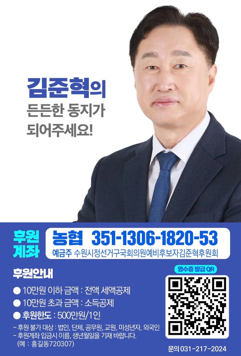 또한, 수원시 정 지역구에서는 문재인 정권의 종합부동산세 세금폭탄으로 직격탄을 맞은 광교신도시 내 고소득층, 매탄동 아파트 재건축 문제, 지역구 의원의 소홀했던 선거운동 등이 주요 원인으로 꼽히고 있습니다. 이러한 이슈들을 해결하기 위해 김준혁 교수는 지역구 내에서 다양한 활동을 펼치고 있습니다. 그는 민주당 내에서 당내 혁신모임 ‘더 새로’ 공동대표, 경기도당 대변인을 맡았으며, 정당혁신추진위원, 전략기획위원회 부위원장, 국가균형발전위원회 자문위원 등을 역임한 바 있습니다. 이러한 경험을 바탕으로 김준혁 교수는 지역구의 이슈를 해결하고, 지역 발전을 위한 다양한 정책을 제안하고 있습니다.