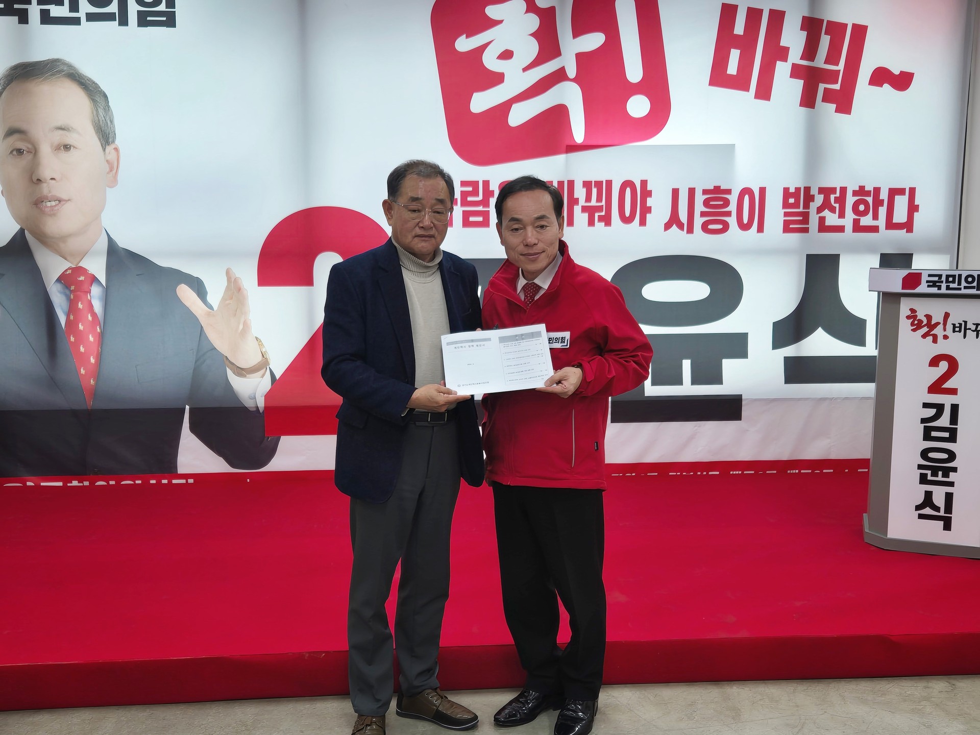 그는 민주당과 조정식 사무총장은 4년 전에는 나를 전략공천으로 뭉개더니 이번에는 부적격 처리로 또 뭉갰다며 불출마도 생각했지만, 민주당을 지키고 있어야 할 이유를 찾지 못했다고 말하였습니다2. 이에 따라 김윤식 후보는 민주당을 탈당하고 국민의힘에 입당하였습니다. 김윤식 후보는 시흥의 발전을 위해 새로운 길을 열어갈 사람이 필요하며, 그 일꾼이 바로 자신이라고 강조하였습니다. 그는 민주당이 독점하고 있는 시흥의 현실은 중앙정부와 괴리되어 국책사업이 지연되었다고 지적하였습니다.