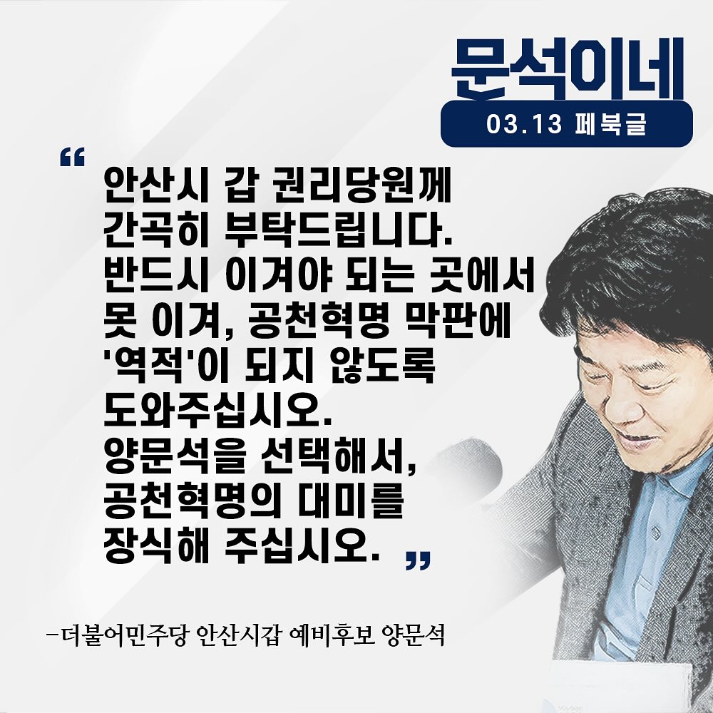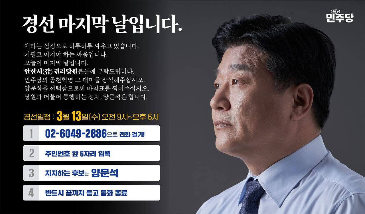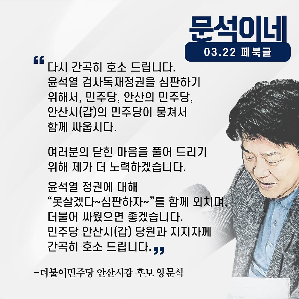 양문석 후보는 더불어민주당에서 안산갑 지역의 국회의원 선거를 앞두고 경선을 거쳐 후보로 확정되었습니다. 양문석 후보는 성균관대학교에서 문학 학사, 정치학 석사, 그리고 언론학 박사로 졸업한 학력을 가지고 있습니다. 이전에는 방송통신위원회에서 활동하며 전 방송통신위원으로도 활동했습니다. 양문석 후보는 안산시민의 삶의 공동체를 구축하고, 윤석열 검사 독재정권을 심판하는 역사적인 선거에서 민주당 후보로 나서고 있습니다. 그의 노무현 전 대통령 비하 발언과 관련하여 논란이 있었지만, 양문석 후보는 이를 버티기로 결심하고 있습니다.