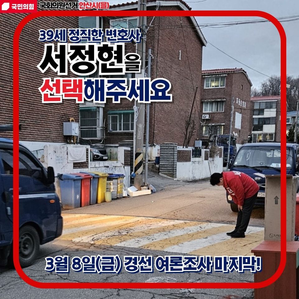 국민의힘의 서정현 후보는 경기 안산을 지역구에서 활발한 정치 활동을 펼치고 있습니다. 그는 국민의힘 안산을 국회의원 후보 경선투표를 앞두고, 안산시 전직 시도의원 8명이 그의 지지를 공식 선언했습니다1. 이들은 서정현 후보가 후퇴하는 안산을 막아내고 정체된 안산의 숙원과제를 해결하는 데 누구보다 적임자라고 강조했습니다.