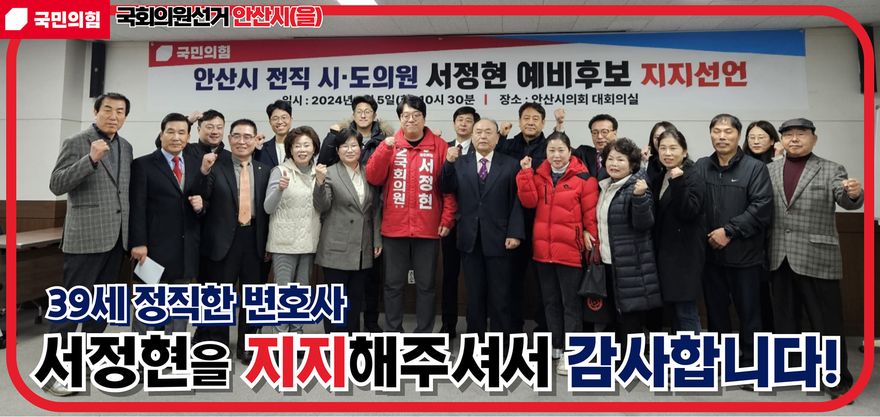국민의힘의 서정현 후보는 경기 안산을 지역구에서 활발한 정치 활동을 펼치고 있습니다. 그는 국민의힘 안산을 국회의원 후보 경선투표를 앞두고, 안산시 전직 시도의원 8명이 그의 지지를 공식 선언했습니다1. 이들은 서정현 후보가 후퇴하는 안산을 막아내고 정체된 안산의 숙원과제를 해결하는 데 누구보다 적임자라고 강조했습니다. 서정현 후보는 변호사로서 쌓은 전문성과 젊은 정치인으로서의 열정을 바탕으로 안산과 경기도를 위해 헌신하겠다는 약속을 하였습니다. 그는 국민의힘 안산단원을 당협위원장으로서 지역구가 사라질 수 있는 절체절명의 위기 상황에서도 당과 당원을 위해 헌신해 온 인물로 평가받고 있습니다.