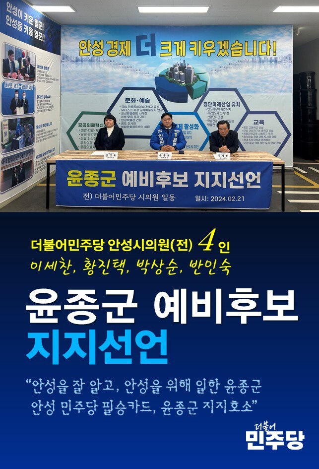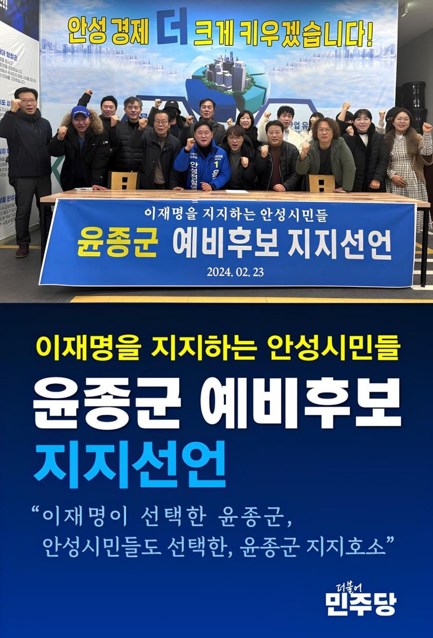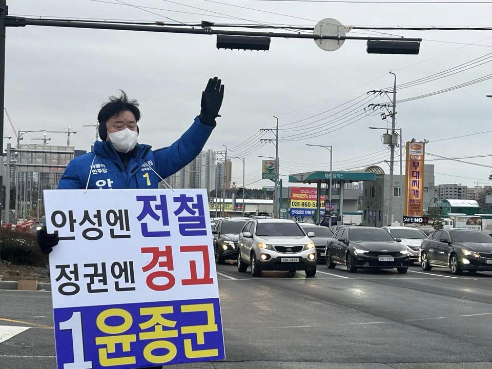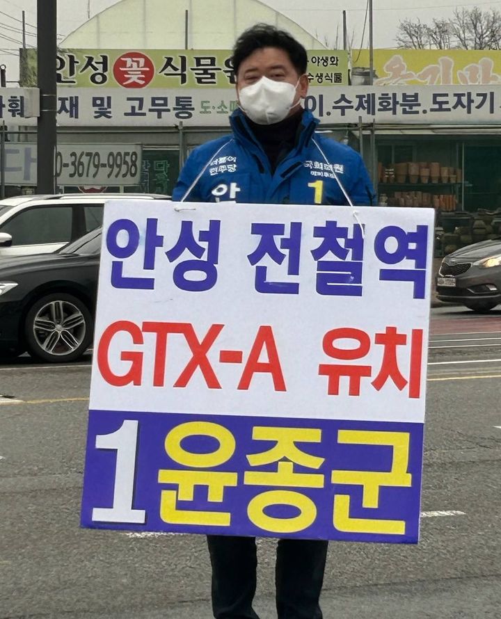 윤종군 후보는 "광역급행전철 GTX-A 안성역 종점 연장, 평택부발철도 공도역, 동안성역 신설로 안성을 진짜 수도권으로 만들겠다""본선 승리로 보답하겠다"고 주장하였습니다
