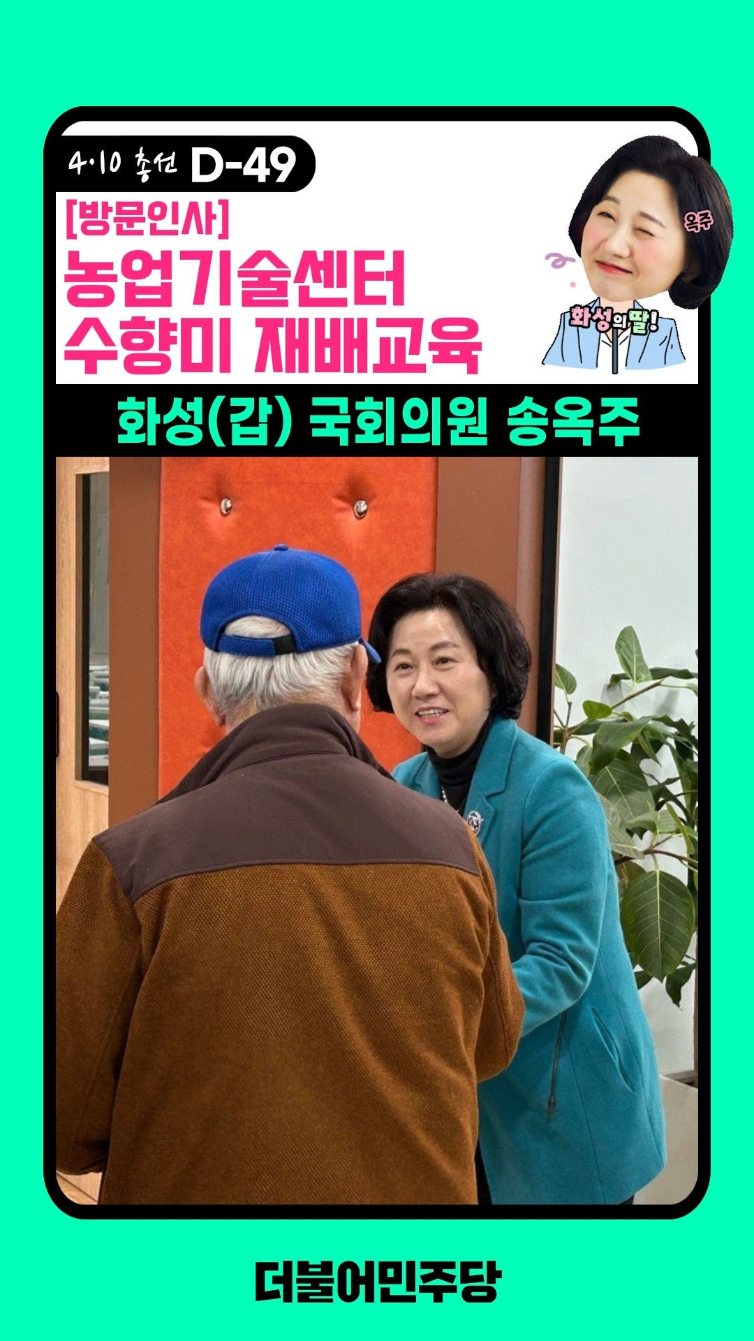또한, 송옥주 의원은 농업소득 감소와 농업 생산비 폭등 등으로 농사만으로는 생계유지가 어려운 농민들의 어려움을 해결하기 위해 농업외소득 기준을 현실화하여 기본직불금 지원에서 배제되는 농가를 보호하기 위한 법안을 발의하였습니다. 송옥주 의원은 화성시의 발전을 위해 노력하고 있으며, 그의 활동은 지역 주민들에게 큰 지지를 받고 있습니다