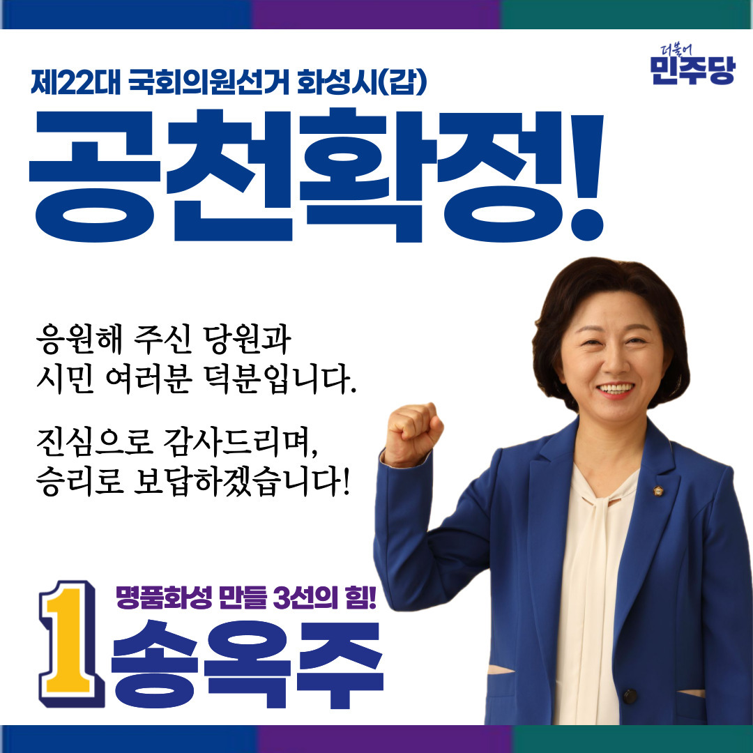 송옥주 의원은 더불어민주당 소속으로 재선 (제20대, 제21대)을 지냈습니다. 그의 지역구인 경기 화성시갑은 총 유권자 199,428명으로, 58,689표 (득표율 49.65%)의 지지를 받아 당선되었습니다. 그는 국회 국방위원회 위원, 더불어민주당 노동존중실천 국회의원단 책임의원, 더불어민주당 을지로위원회 소속 국회의원 등 다양한 역할을 수행하였습니다. 이 밖에도 송옥주 의원은 지역구 발전을 위해 명품화성을 위한 2조7천365억 원 국비 예산 및 201억 원의 지역특별예산 확보, 국지도 82호선 및 지방도 313호선 확·포장 사업, 화성시교육국제화특구 지정, 남양 체육복합센터 건립, 송옥주 의원은 화성시 발전을 위해 노력하고 있으며, 그의 활동은 지역 주민들에게 큰 지지를 받고 있습니다.
