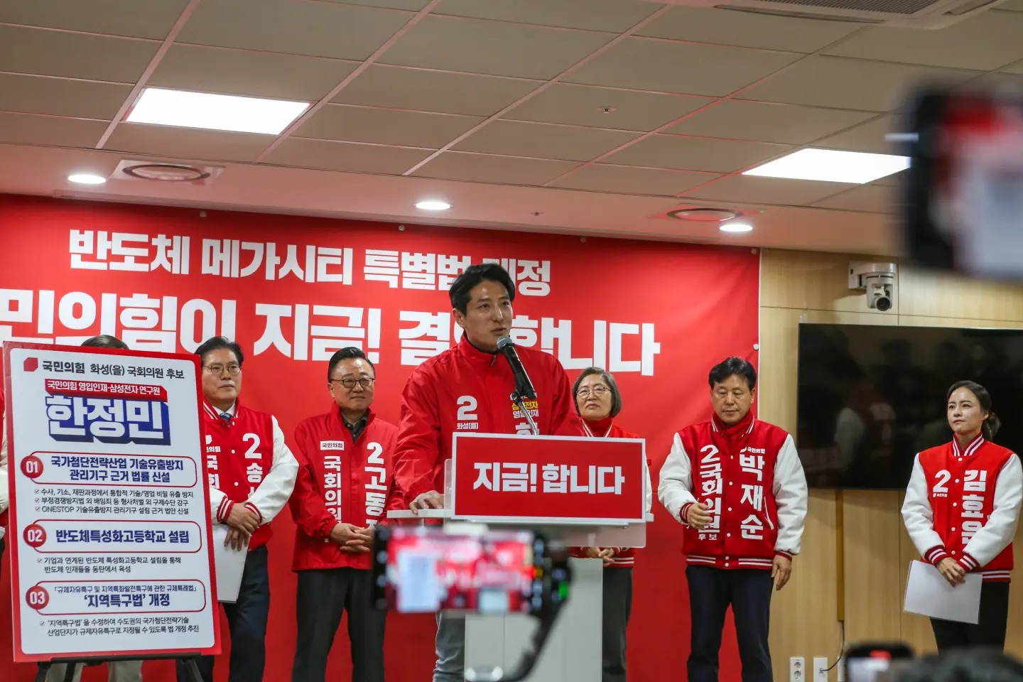 한정민 후보는 그의 정치적 입장을 명확하게 밝혔습니다. 그는 삼성전자에서 근무하면서 반도체 산업의 중요성을 체감하였고, 이를 바탕으로 반도체 산업의 경쟁력 강화를 위한 정책을 주장하고 있습니다. 그는 "반도체를 중심으로 진행되는 미중 패권경쟁은 한국의 국가전략산업인 반도체 업황을 위협하고 있다"며, 세계 주요 국가들이 반도체 특별법을 발의하고 자국 반도체 산업에 천문학적인 지원을 하는 반면, 대한민국은 반도체 산업의 경쟁우위를 잃어가고 있다고 지적하였습니다.