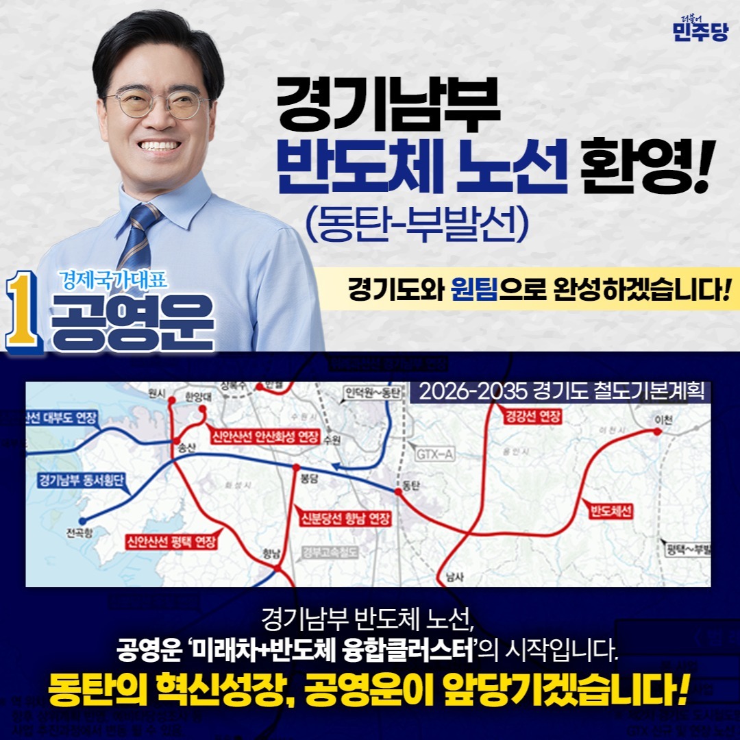 공영운 후보는 현대자동차 전략기획 담당 사장 출신으로, 18년간 화성을 터전으로 일한 인연을 강조하며 "말보다 실력으로 동탄의 혁신성장을 이뤄내겠다"고 포부를 밝혔습니다. 그는 현대차 사장 시절 개발 과정에 참여해 신도시에 보급했던 수요자 맞춤형 실시간 노선 생성 인공지능 (AI) 버스시스템 '똑버스 (똑똑한 버스)'가 현재 동탄에 시범 운영 중인데 이를 확충해 동탄역에 과도하게 의존하는 교통환경을 개선해 주민 편의에 기여하는 등 동탄이 젊은 도시를 넘어 누구나 살기 좋은 도시로 변화시키는 데 일조하겠다고 밝혔습니다.
