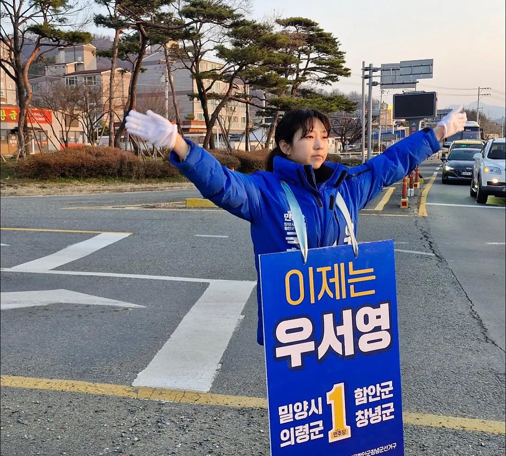 우서영 후보는 경남 밀양·의령·함안·창녕 지역구에서 더불어민주당 국회의원 후보로 출마하였습니다. 이 지역은 전통적으로 보수 정당의 강세 지역으로 알려져 있으며, 국민의힘 소속의 조해진 의원이 현역으로 있습니다1. 우서영 후보는 28세의 젊은 여성 정치인으로, 지역구 내에서 변화와 새로운 도전을 강조하며 선거 운동을 펼치고 있습니다. 우서영 후보는 선거사무소 개소식을 통해 본격적인 선거 운동을 시작하였고, 이재명 더불어민주당 대표와 여러 국회의원들의 지지를 받으며 필승 의지를 다졌습니다.