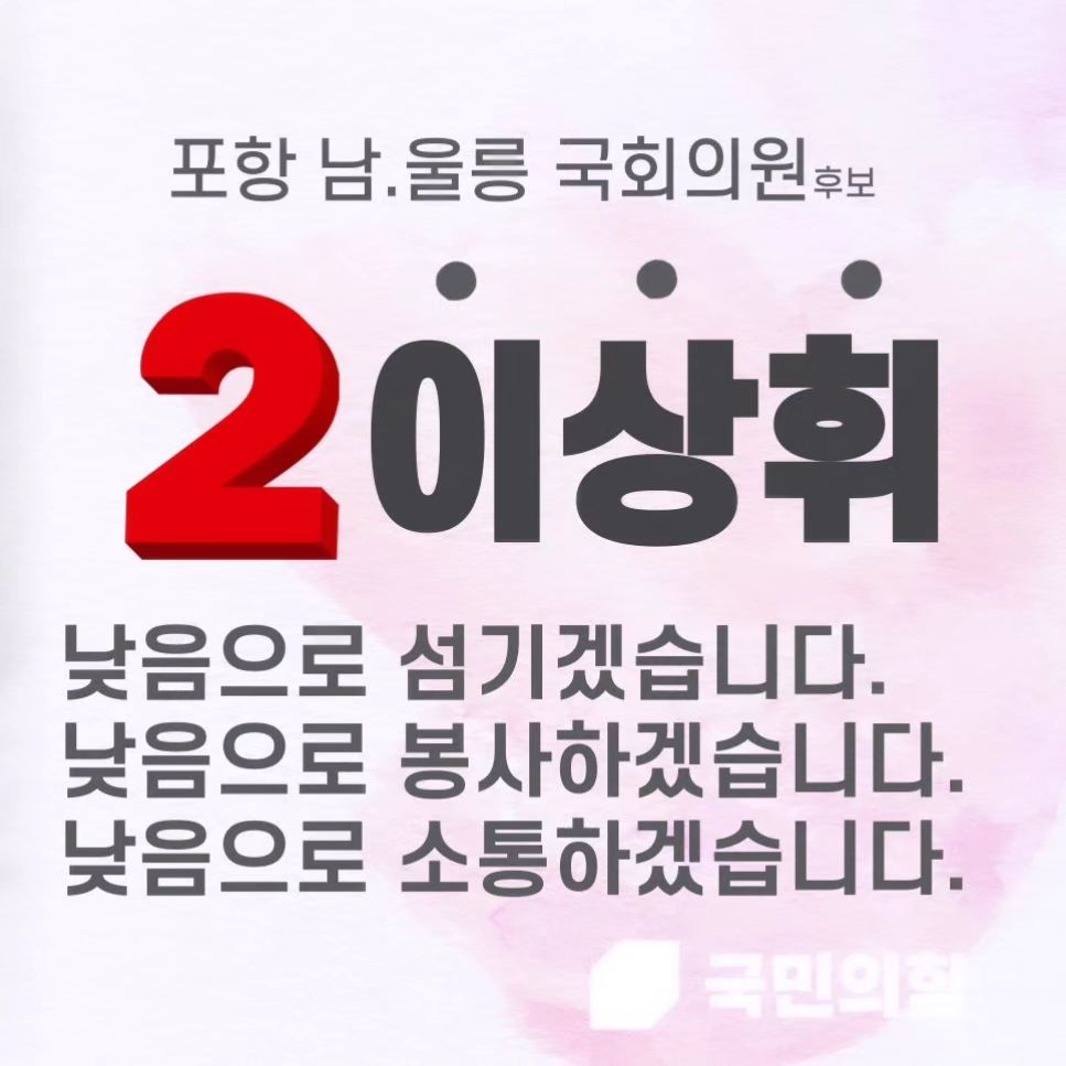 이상휘 후보는 갈등과 대립을 넘어 소통과 협력, 그리고 통합의 포항을 이루는 밑거름이 되겠다고 약속하였습니다. 그는 시민 여러분과 함께 승리해 지역발전에 필요한 정책을 만들고, 예산을 확보해 포항과 울릉의 위상을 되찾겠다는 약속을 지킬 수 있도록 본선에서 승리할 때까지 함께 해 달라고 호소하였습니다.