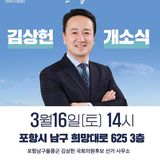 김상헌 후보는 2024년 총선에서 더불어민주당 포항남·울릉 지역구 후보로 출마하였습니다. 그는 지역 정치가 살아야 포항의 경제가 살아날 수 있다는 입장을 밝혔으며, 포항의 인구 감소와 지역총생산 감소 등의 문제를 지적하였습니다. 그의 주요 공약으로는 포스텍 연구중심 의과대학 설립 및 국·공립 상급종합병원 유치, 영일만을 국가정원으로 조성하여 지역경제를 활성화하는 신영일만의 기적, 그리고 포항지진 손해배상 법제화 등이 있습니다.