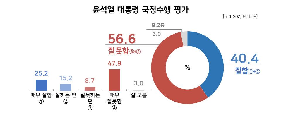이번 여론조사에서 윤석열 대통령 국정수행에 대해 40.4%가 긍정적이라고 밝히며 최근 지지율 상승으로 40%선에서 안정적인 지지를 받고 있는 윤석열 대통령 지지율과 함께 국민의힘 지지율도 안정적으로 올라 비록 더불어민주당에 뒤쳐져 있긴 하나 41.9%로 더불어민주당 43.7%에 바짝 붙어 있어 2024년 총선은 어느 때보다 뜨거운 경쟁을 하는 양당 정치가 될 것으로 예상됩니다.