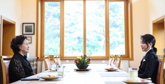 둘의 대화에서 권양숙 여사는 먼길 차자와줘 고맙다는 뜻을 먼저 밝혔으며 영부인으로서 많은 고민과 준비를 해서 본연의 역할에 충실해 달라며 당부의 이야기를 전했으며 김건희 여사는 이 당부와 조언에 대해 자주 찾아 뵙고 가르침을 듣겠다며 감사의 뜻을 전한 것으로 알려졌습니다. 둘의 환담에 앞서 김건희 여사는 권양숙 여사가 빵을 좋아한다고 따듯한 빵을 준비한 것으로 알려졌으며 권양숙 여사는 김해장군차를 대접하고 ‘노무현의 사람 사는 세상’ 책 4권을 선물한 것으로 대통령실에서 확인하였습니다. 아울러 김건희 여사는 ‘깨어있는 시민 문화 체험 전시관’을 둘러보며 노무현 재단 기념품 가게에 들러 티셔츠와 우산, 에코백 등을 구입한 것으로 알려졌으며 대통령과 별개로 영부인으로서의 행동 반경을 넓히고 있다는 해석이 나오고 있어 앞으로 그녀의 행보에도 관심이 상당히 갑니다