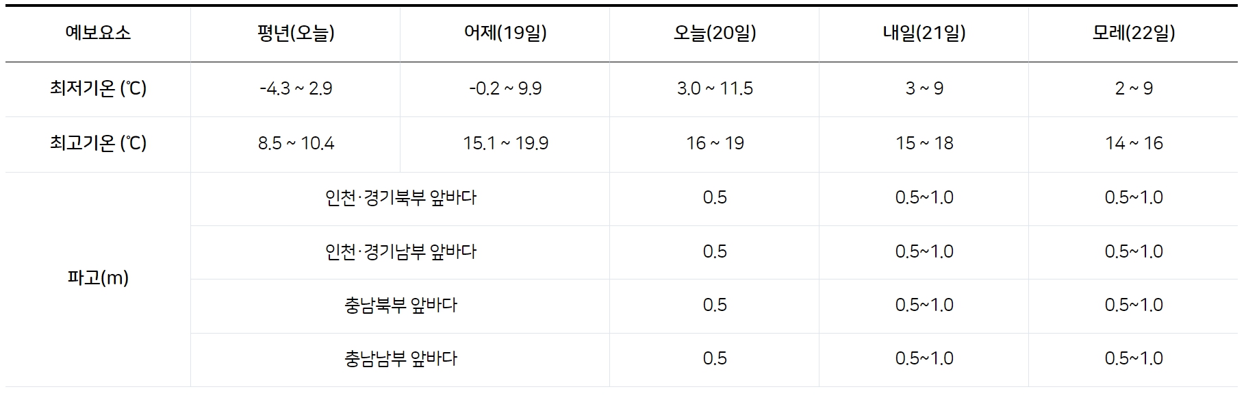 날씨 단기 예보(11월 21일, 22일)