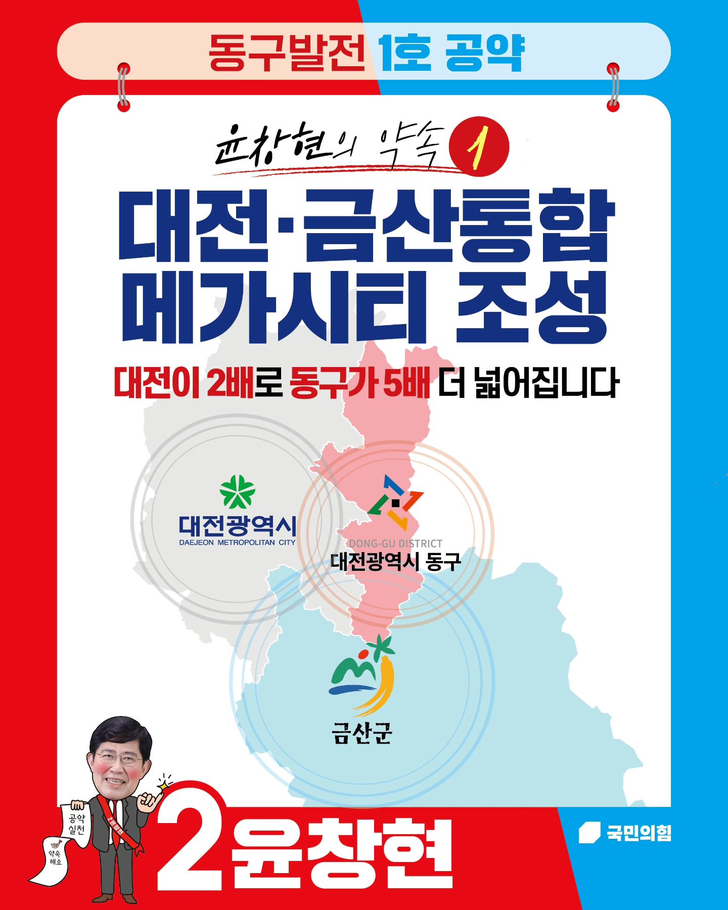윤 후보는 "동구가 대전의 중심이 되는 시대를 열고 싶다"며 포부를 밝혔습니다5. 그는 동구의 경제와 민생현장에서 대전경제의 활력을 높이고, 동구를 행복하게 하는 청년·워킹맘·어르신·소상공인 맞춤형 특화 공약을 준비하고 있습니다. 한현택 전 동구청장이 "국민의힘의 선거 승리를 위해 제22대 총선에 불출마한다"고 선언하며, "정치인으로서의 아픔을 뒤로하며, 선당후사의 정신으로 윤창현 후보를 지지한다"고 밝혔습니다7. 이로써 대전 동구에서는 국민의힘 당선 가능성이 높아진 것으로 보입니다.