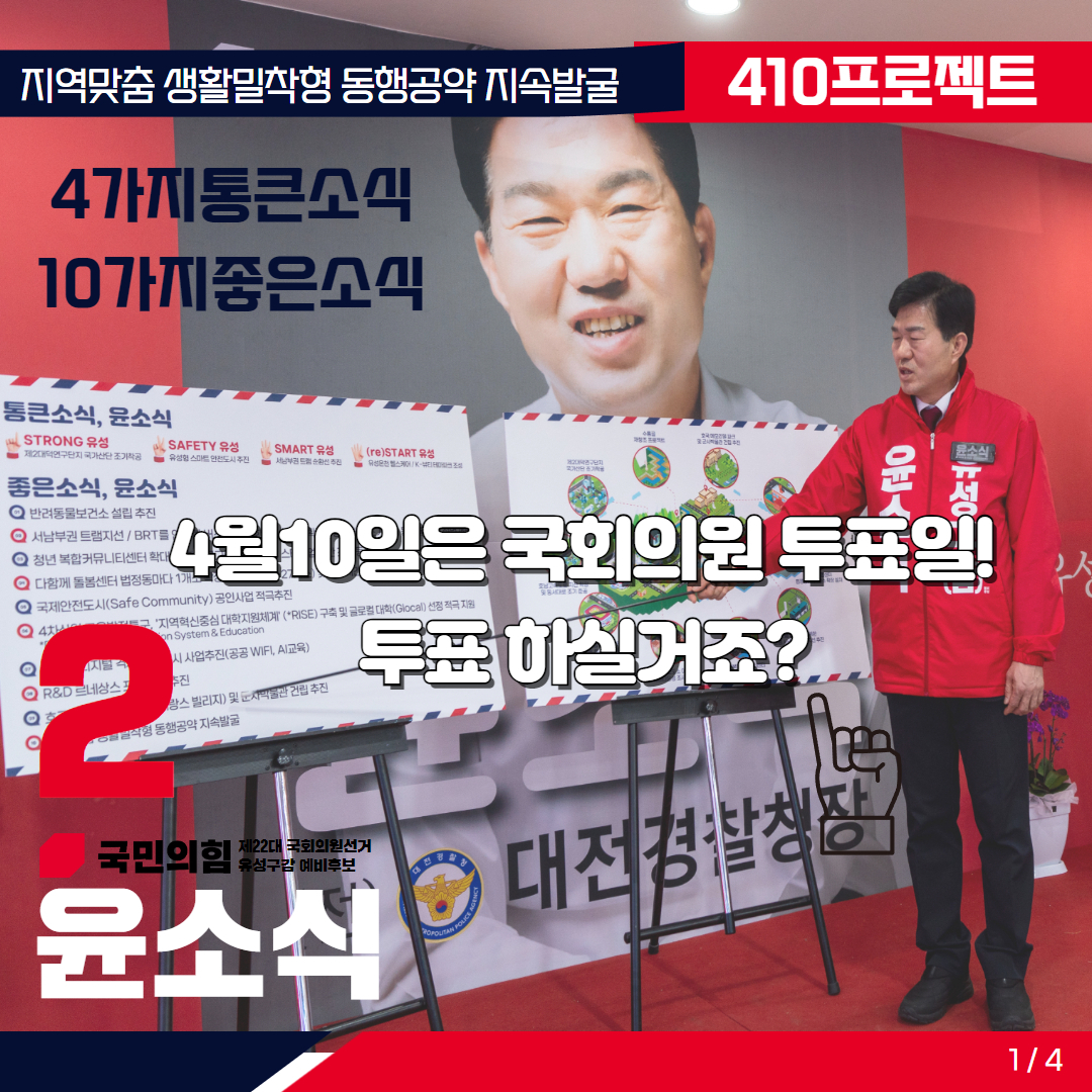 윤소식 후보는 국민의힘 대전 유성갑 국회의원 후보로, 그의 주요 활동 분야는 치안과 교통입니다1. 그는 대전동산고등학교와 경찰대학을 졸업하고 1989년 경위로 임용되어 현재 치안감의 자리까지 올랐습니다1. 그는 대전서부경찰서장, 서울중부경찰서장, 경찰대 교수부장, 서울강서경찰서장 등을 지냈습니다. 2021년 2월에 경찰청 치안감으로 승진하고 같은 해 12월에 대전경찰청장으로 취임했습니다. 그는 1년간 대전 지역 치안과 조직 안정화에 힘썼습니다.