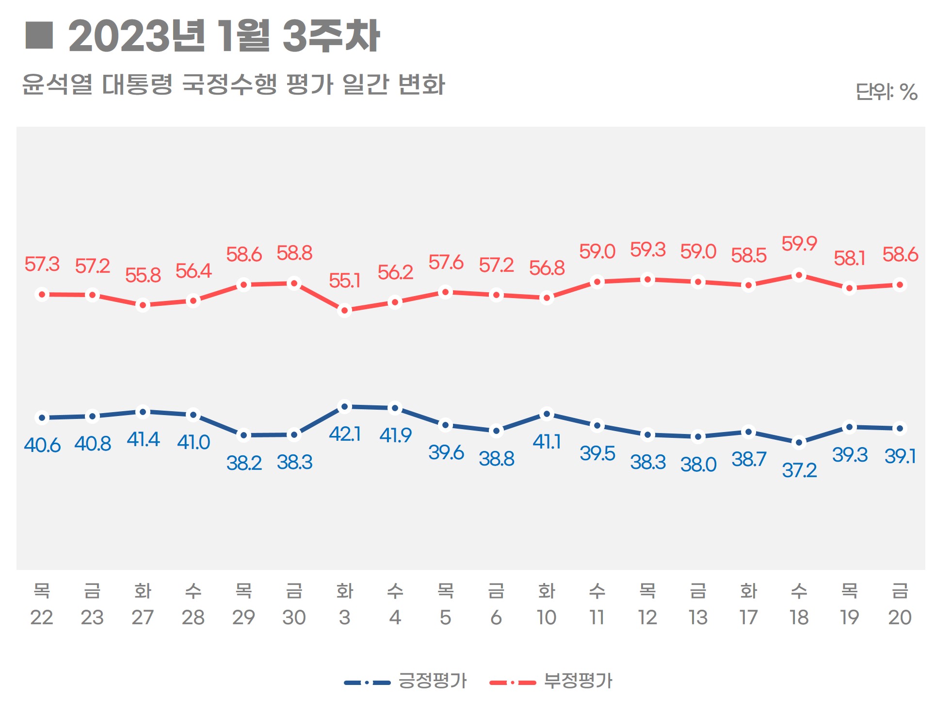 대통령 지지율 국정수행 평가 여론조사 결과