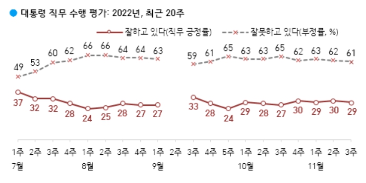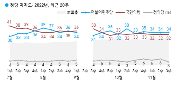 대통령 지지율 정당 지지율 여론조사 갤럽 (11월 3주 발표) 알아보기