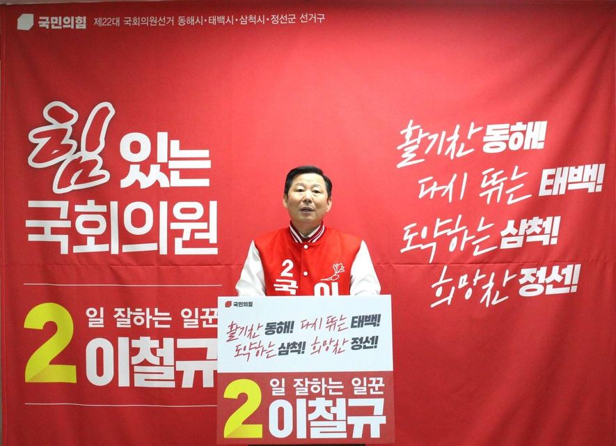 국민의힘 이철규 후보는 동해·태백·삼척·정선 지역의 국회의원입니다. 그는 지난 8일 동해시청에서 기자회견을 갖고 4·10 총선 출마를 공식 선언하였습니다. 이철규 후보는 "힘 있는 3선 국회의원이 돼 동해·태백·삼척·정선의 100년 미래를 완성하겠다"고 강조하였습니다.
