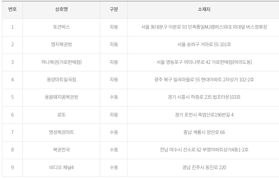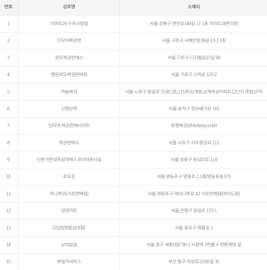 11 하나복권(가로판매점) 서울 영등포구 여의나루로 42 가로판매점(여의도동)