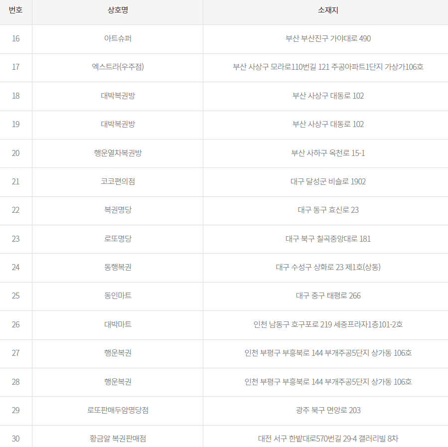 30 황금알 복권판매점 대전 서구 한밭대로570번길 29-4 갤러리빌 8