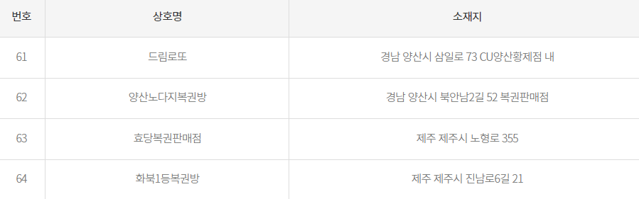 62 양산노다지복권방 경남 양산시 북안남2길 52 복권판매점