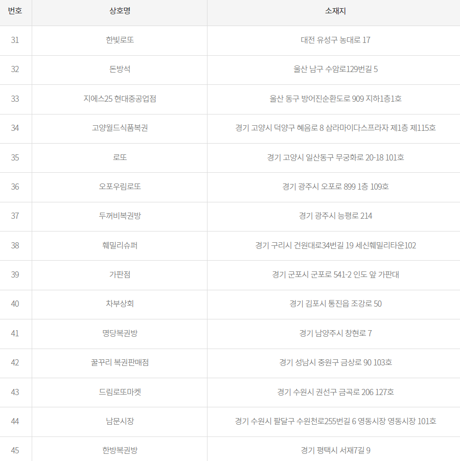 30 황금알 복권판매점 대전 서구 한밭대로570번길 29-4 갤러리빌 8차