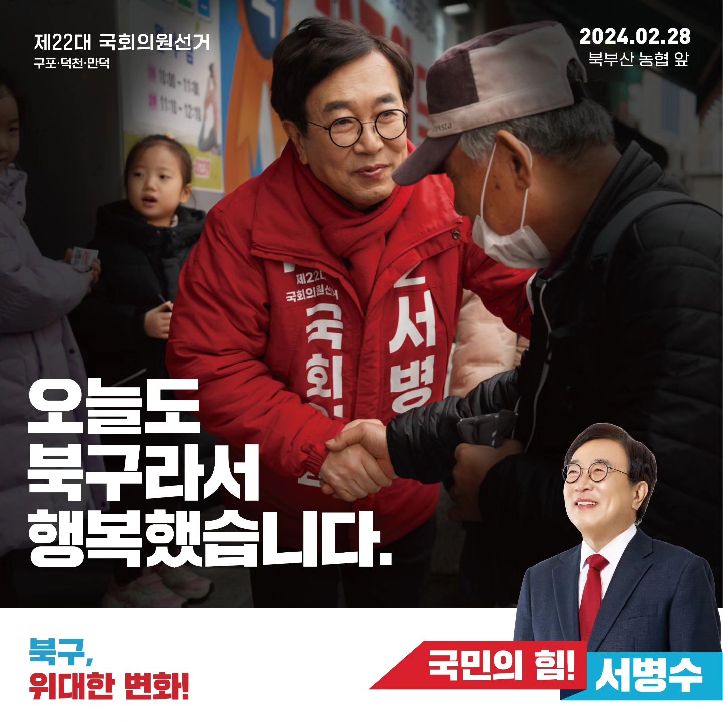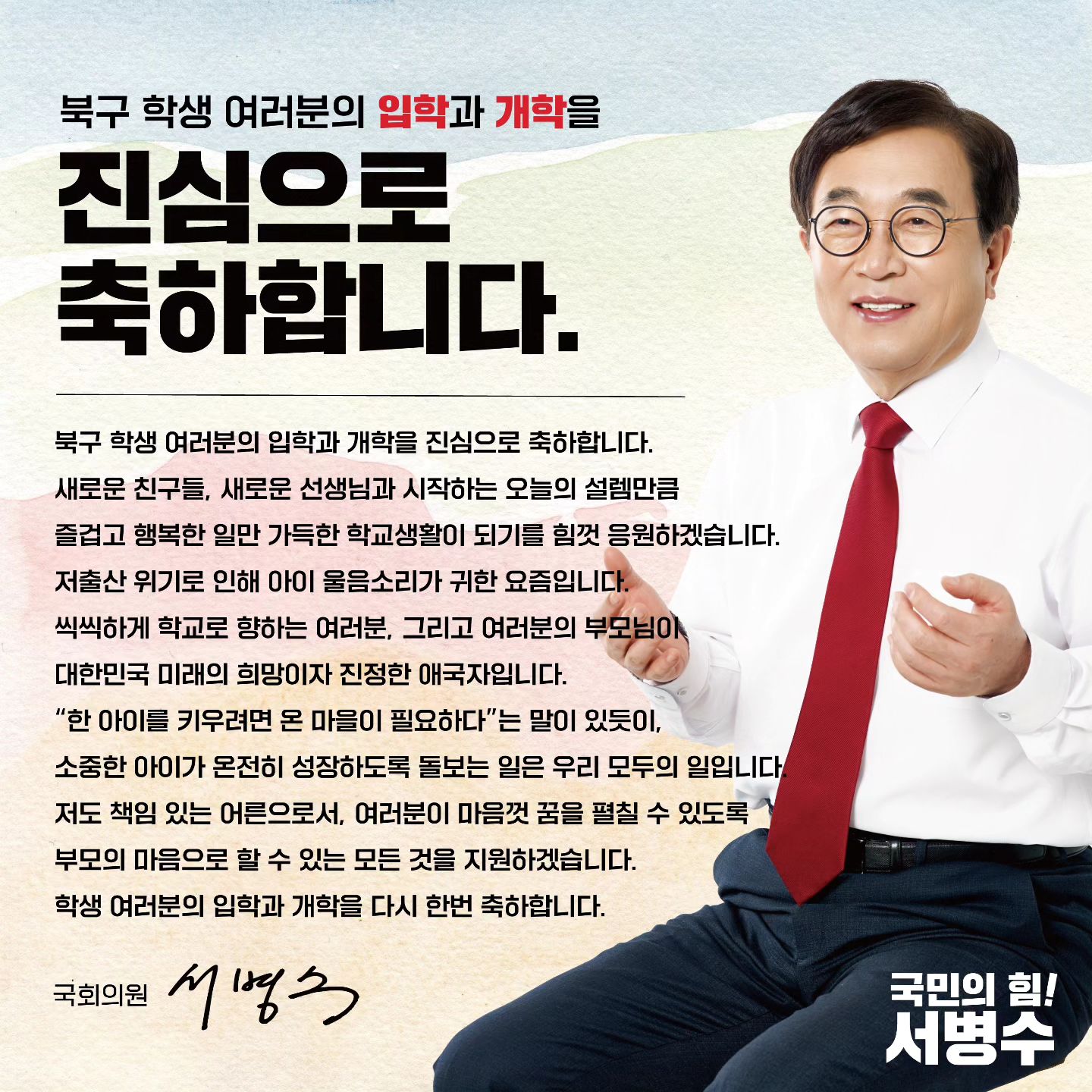 서병수 후보는 "지난 대통령 선거가 문재인 정권 5년을 심판하는 선거였다면 이번 국회의원선거는 민주당 국회 4년을 심판하는 선거"라고 말하며 "국정을 가로막고 헌정을 농단하는 민주당이라는 거대 입법 권력을 심판하는 데 가장 앞장서 싸우겠다"고 강조하였습니다.