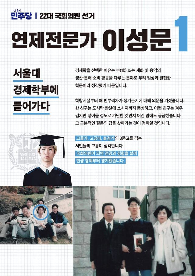이성문 후보는 두 아이를 키우며 변호사 일을 하고 평범한 일상을 누리며 살 수 있었으나 우리 대한민국과 부산 그리고 연제구가 처한 현실을 가만히 지켜보고 있을 수만은 없었다고 말하였습니다. 그는 부산이 갈수록 쇠퇴해 가고 있고, 연제구 역시 가지고 있는 기회요인을 제대로 발현하지 못하고 있기 때문에 정치가 제 역할을 해야한다고 생각한다고 밝혔습니다.