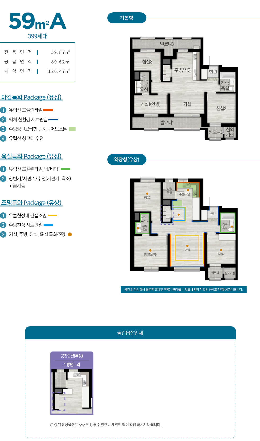 84A 타입: 5억 9,120만 원 (발코니 확장비 1,956만 원 + 유상 옵션 363만 원 별도)