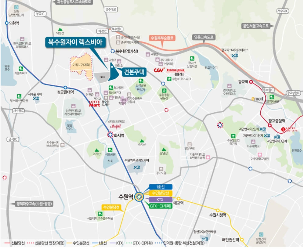 북수원자이렉스비아는 경기도 수원시 장안구 정자동에 위치해 있으며, 111-1구역(정자지구) 주택재개발정비사업 지역입니다. 이 단지는 교통, 교육, 생활 편의시설 등 주변 인프라가 잘 갖춰져 있어 실거주자와 투자자 모두에게 인기가 높습니다. 또한, 지하철 1호선 성균관대역과 수원역이 가까워 서울 접근성도 좋고, 주변에 초등학교, 중학교, 고등학교가 위치해 교육 환경도 우수합니다. 평면도는 타입별로 효율적인 공간 설계와 수납공간 극대화가 특징으로, 맞통풍 구조 덕분에 채광과 환기도 우수합니다.