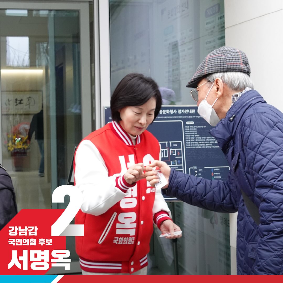 서명옥 후보는 2024315일 국민의힘에서 국민추천대상 지역구인 서울 강남갑에 공천되었습니다123. 그는 경북대 의과대학을 졸업하고 영상의학과 전문의 자격을 취득한 뒤 강남구 보건소장, 한국공공조직은행장 등을 역임했습니다. 이번 국민추천 후보 5명 중 유일한 여성이며, 고령화가 사회적 문제로 대두하고 있는 만큼 선진적 제도를 설계하고 구현할 수 있는 실력 있는 보건의료 전문가로 평가받았습니다.