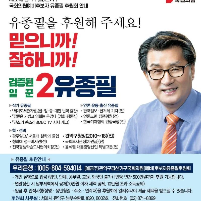 국민의힘의 서울 관악갑 국회의원 후보 유종필은 건전 진보에서 합리적 보수까지 경험한 정치인으로, 좌우 이념과 지역을 포용하고 국민통합을 실현하는 정치인이 되고 싶다는 입장을 밝혔습니다. 그는 연금, 교육, 노동 개혁을 통해 미래 세대의 기회를 확대하고 싶다고 말했습니다.