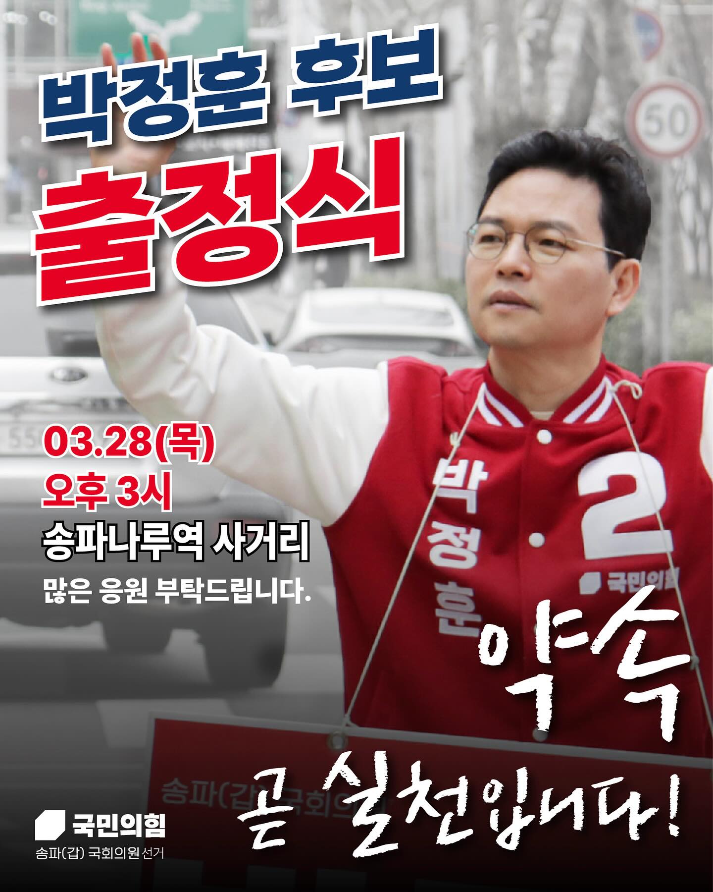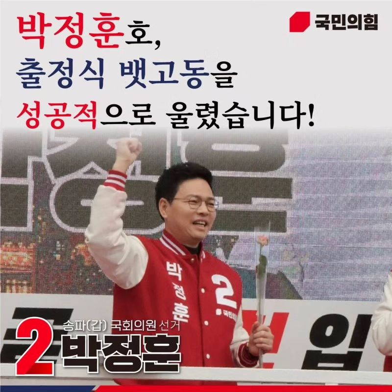 박정훈 후보는 국민의힘 서울 송파갑 후보로 단수 공천을 받았습니다12. 그는 "산재되어 있는 난제들로 인한 주민들의 불편과 염원을 속전속결로 해결하기 위해서는 정부와 국회, 서울시와 송파구까지 일치단결된 원팀 (One Team) 시스템이 완성되어야 한다"며 "새로운 송파의 힘 있는 목소리가 되어 주민들께 송파의 자부심을 반드시 되찾아 드릴 것"이라고 다짐했습니다.