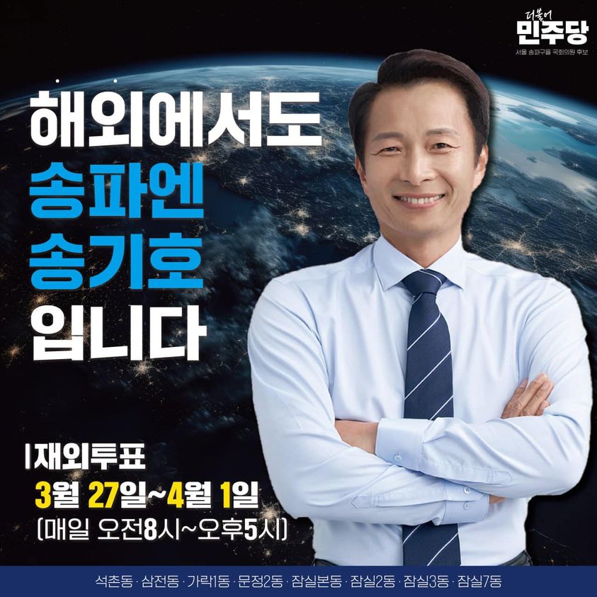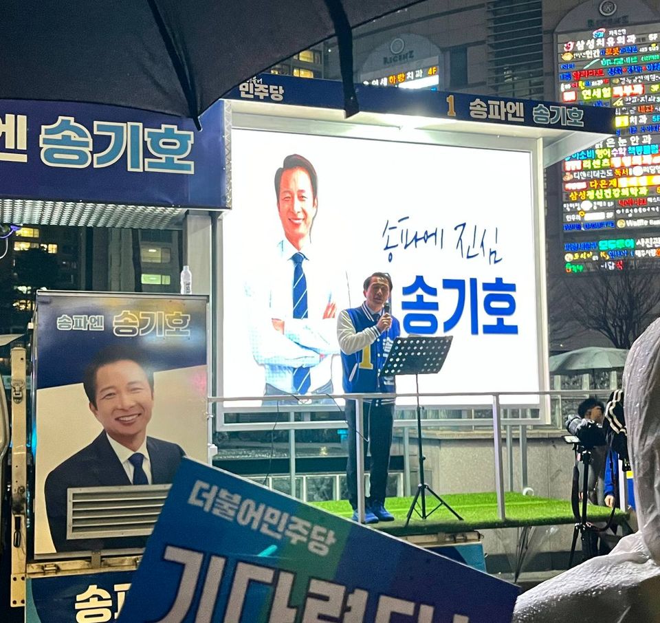 송기호 후보는 더불어민주당의 서울 송파을 지역구 후보로, 변호사 출신으로 2017년 민주당 송파을 지역위원장에 선출된 이후, 이재명 당 대표 법률특보, 민주사회를 위한 변호사모임, 민주당 전략기획위원회 부위원장, 민주당 검찰독재정치탄압대책위원회 운영위원, 대한변호사협회 10·29 이태원 참사 대책특별위원회 위원 등으로 활동하였습니다. 송파을 지역은 석촌동, 삼전동, 가락1, 문정2, 잠실본동, 잠실2·3·7동을 포함하며, 보수세가 강한 잠실동 일대와 비교적 진보세가 강한 석촌·삼전동 표가 갈라지며 선거 때마다 예측불허라는 분석이 잇따르기도 했습니다.