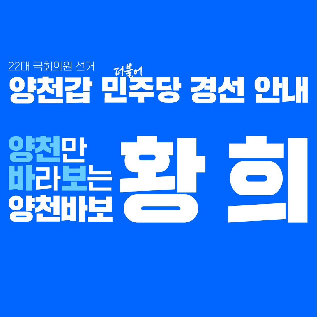 황희 후보는 1967년 7월 28일에 태어난 더불어민주당의 국회의원입니다. 그는 서울 양천구갑 선거구를 대표하며, 외교통일위원회에 소속되어 있습니다. 그는 제20대와 제21대 국회의원으로 재직하였으며, 2021년 2월부터 2022년 5월까지 문화체육관광부 장관을 역임하였습니다. 또한 그는 2018년 5월부터 2020년 5월까지 더불어민주당의 원내부대표를 맡았습니다. 현재 그는 더불어민주당의 서울 양천구갑 국회의원 후보로 활동하고 있습니다. 그는 이번 선거가 민주주의를 지키기 위한 선거라고 강조하였습니다