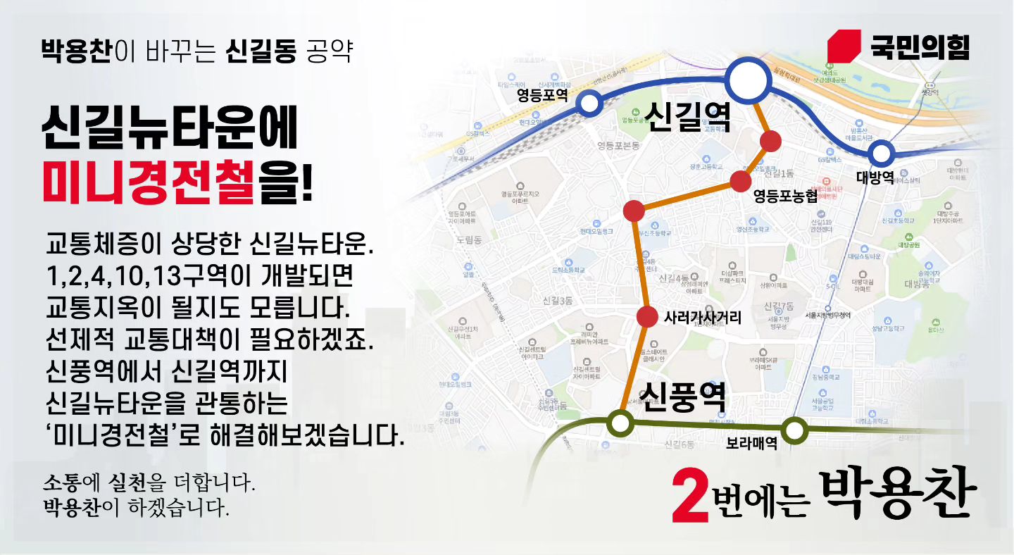 또한, 도림천을 악취에서 탈출시키는 노력이 결실을 보인 것이 박 후보의 현장주의를 증명하는 대표적인 사례입니다. 박 후보는 정치의 방향을 "일하는 국회, 일하는 정치, 성과를 내는 정치가 돼야 한다"라고 제시하였습니다. 이로써 영등포을은 4년 만에 국민의힘 박용찬 후보와 민주당 김민석 후보 간에 리턴매치가 열리게 되었습니다.