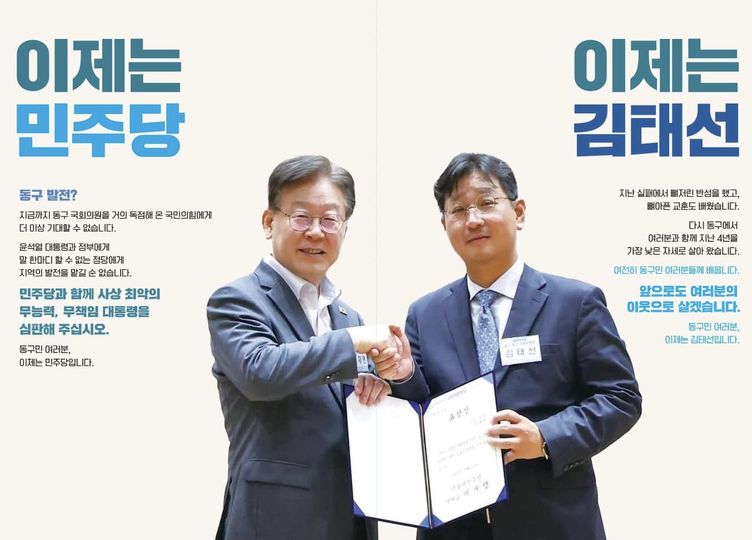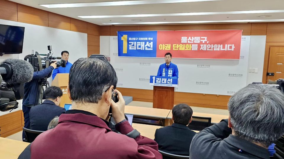 김태선 후보는 제22대 총선에 더불어민주당 울산 동구 후보로 확정되었습니다. 그는 기자회견을 통해 노동당 이장우 후보에게 울산 동구 야권 단일화를 제안하였습니다. 김태선 후보는 "지난 2월 더불어민주당, 진보당, 새진보연합은 총선 승리를 위한 후보 단일화에 합의했다""세 정당의 이념과 추구하는 가치가 다르지만 윤석열 정권 심판이라는 오직 한 가지 이유로 힘을 합치기로 한 것"이라고 밝혔습니다23. 그는 또한 "절박함으로 더불어민주당은 울산 북구 무공천, 진보당은 북구를 제외한 전 지역 후보 사퇴로 하나가 되었다""이제 동구만 남았다"고 강조하였습니다. 이와 함께 "이장우 후보님과 힘을 합쳐 더 큰 민심의 힘을 만들고 싶다"고 전했습니다
